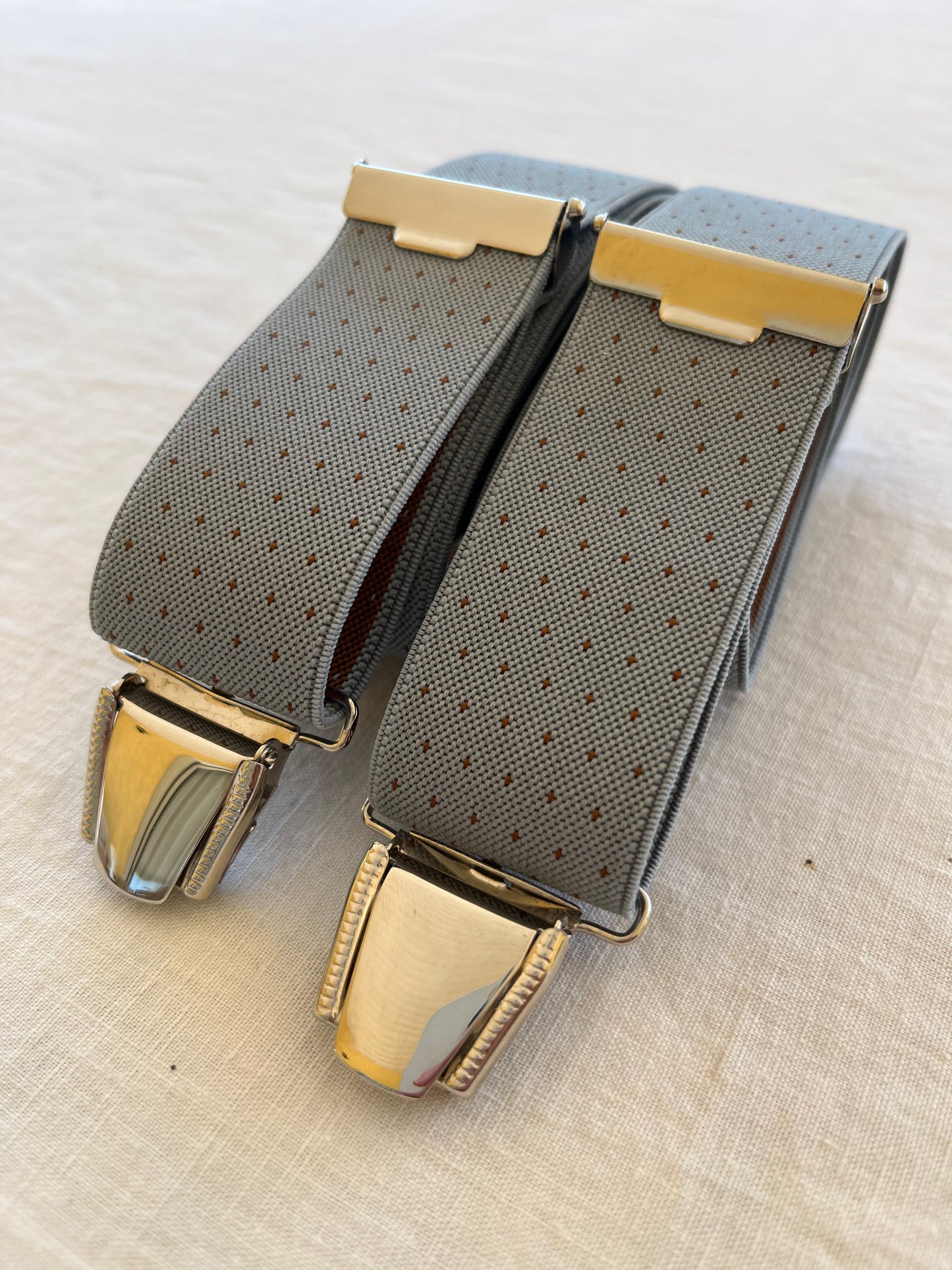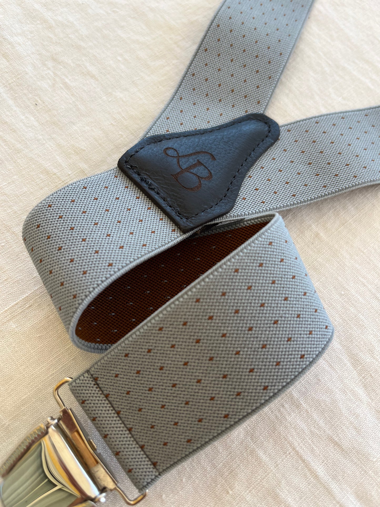 Donnez une nouvelle dimension à votre style avec les bretelles Étienne, dans un élégant gris bleuté rehaussé de fins motifs à point. Raffinées sans être ostentatoires, elles apportent une touche de distinction subtile, parfaite pour l’homme qui soigne chaque détail de sa tenue. Associées à une chemise claire ou une veste texturée, elles créent un look sobre, pointu et résolument moderne.
